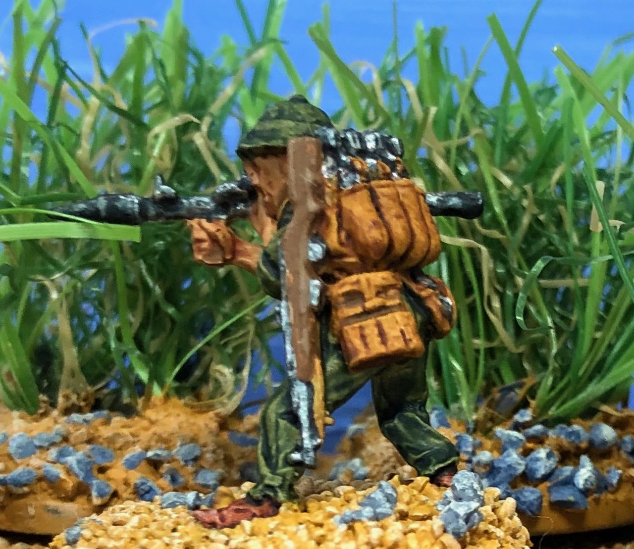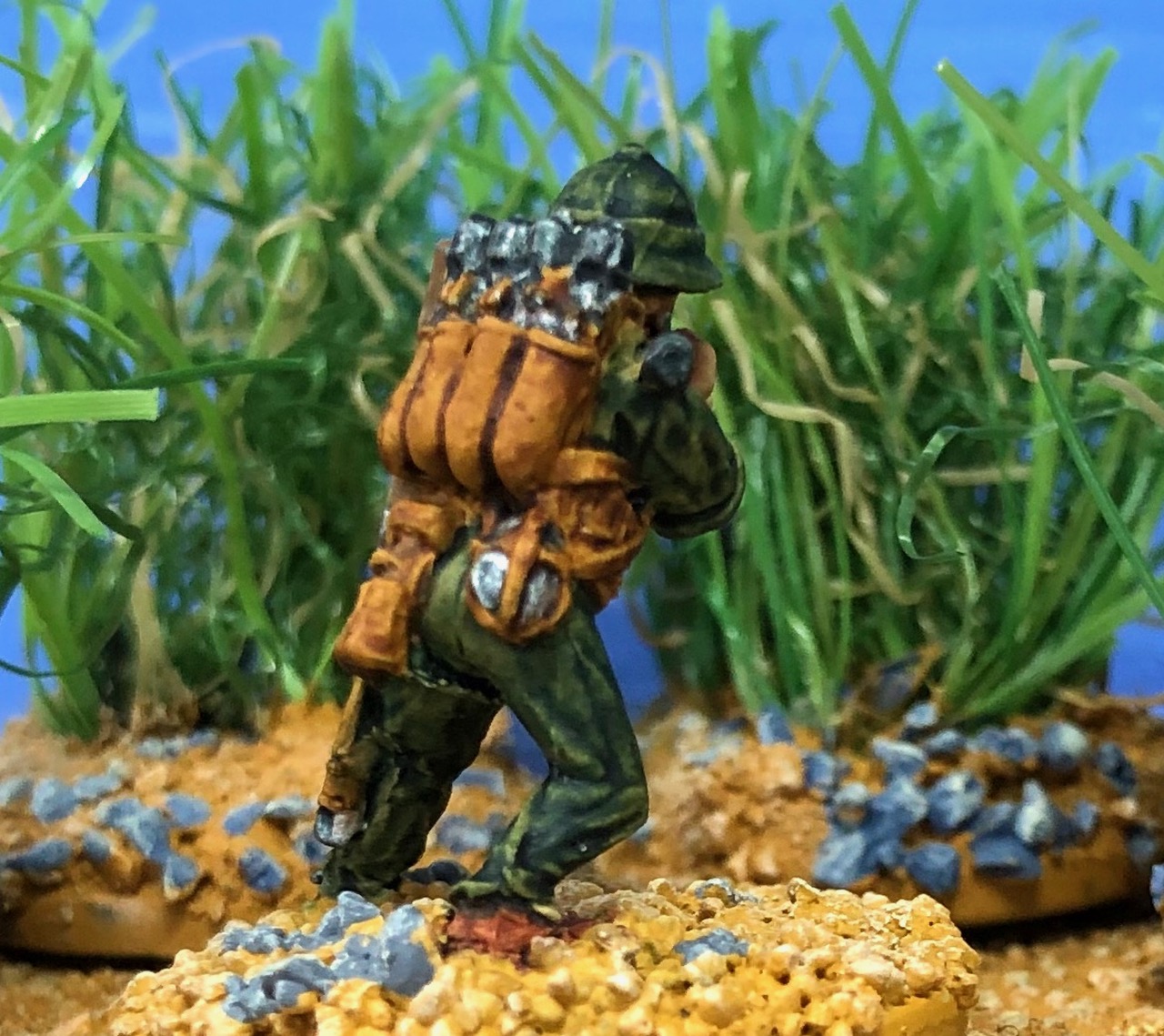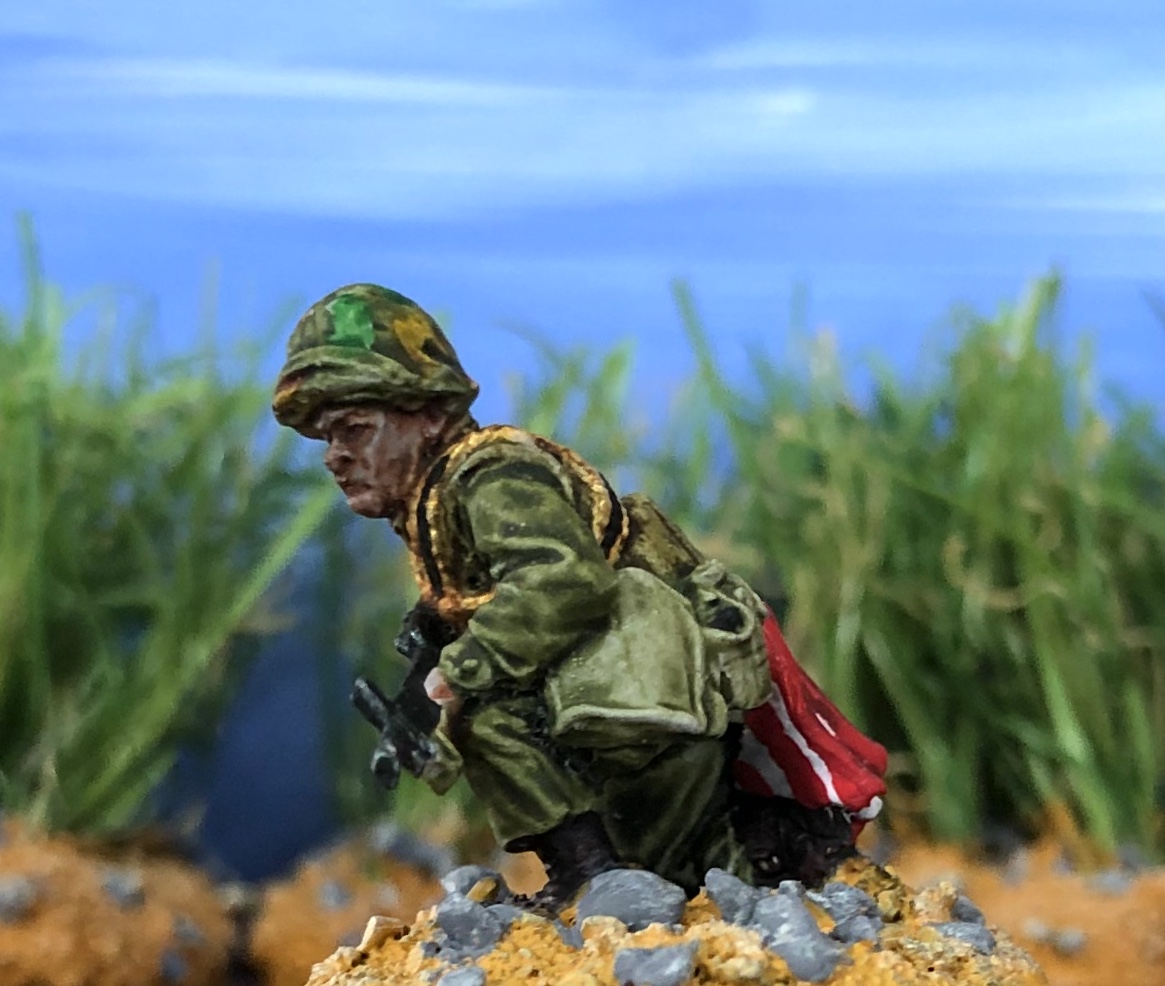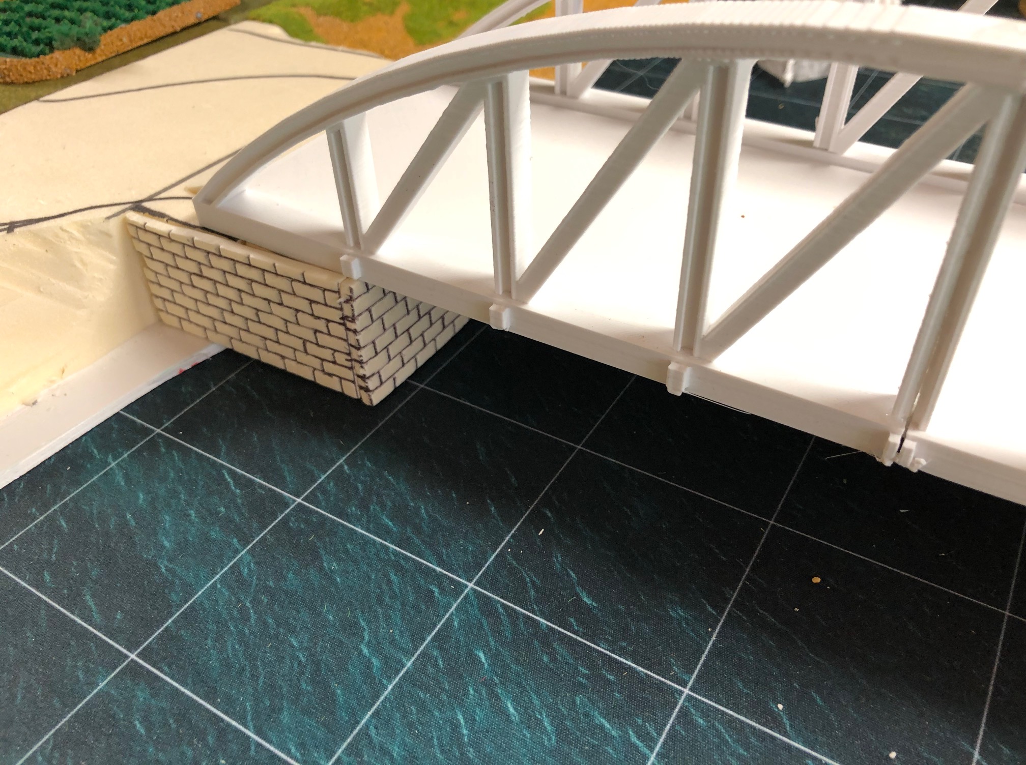 As I have build new riverbanks for my wargaming terrain I needed a bridge to cross the river. First of all I needed banks for the bridge. I build theses, as I build all my terrain tiles, from extruded polystyrene sheets. The bricks are engraved into the polystyrene. I added sand and gravel painted the banks and added self-made flocking material.