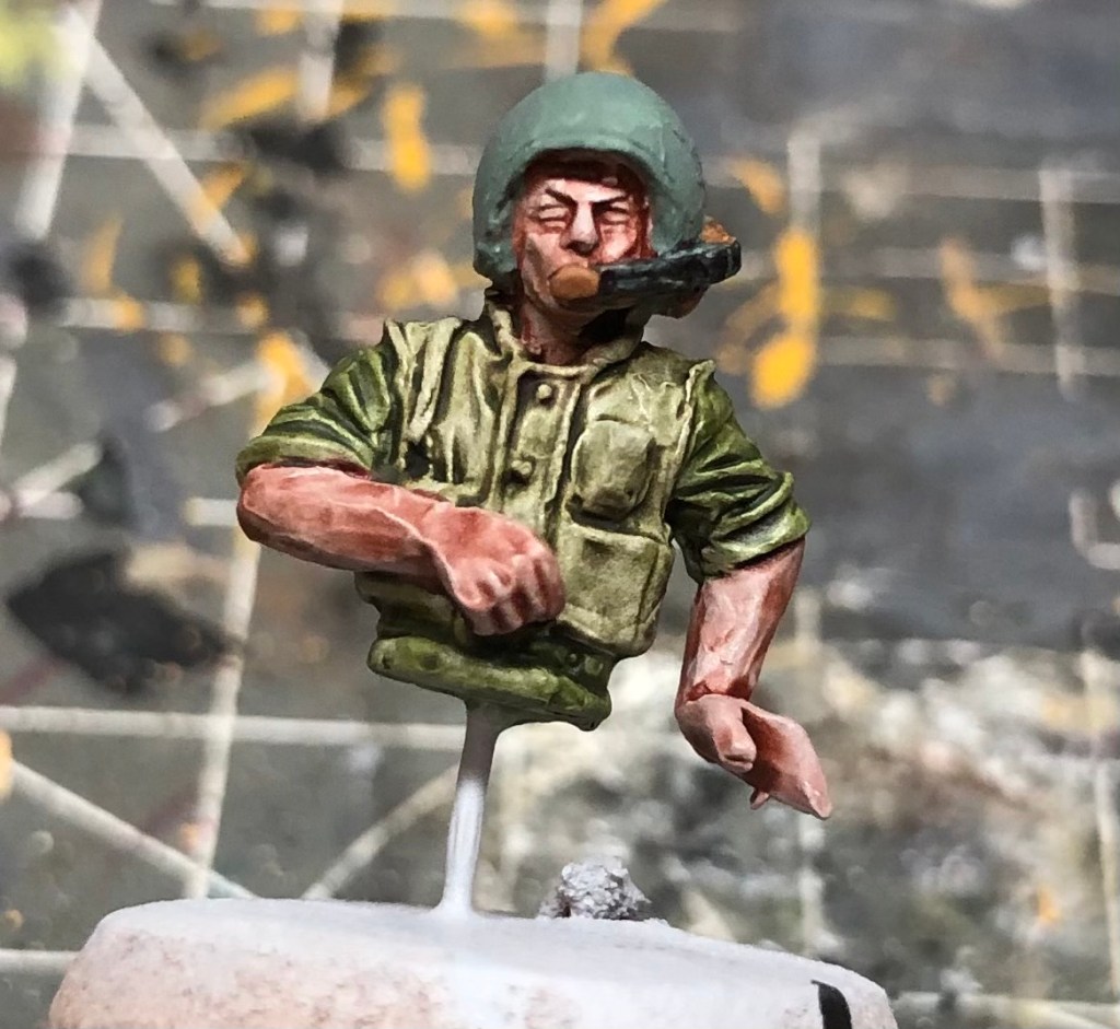 Here is a female Vietnamese farmer planting rice. The figure is from Full Metal Miniatures.