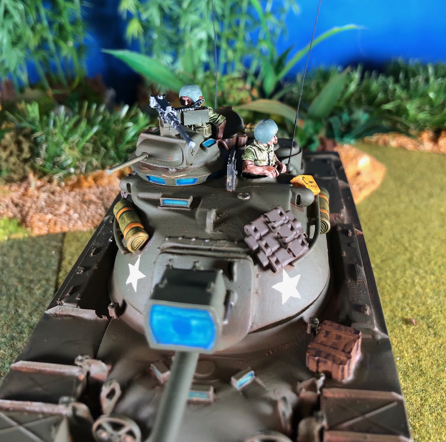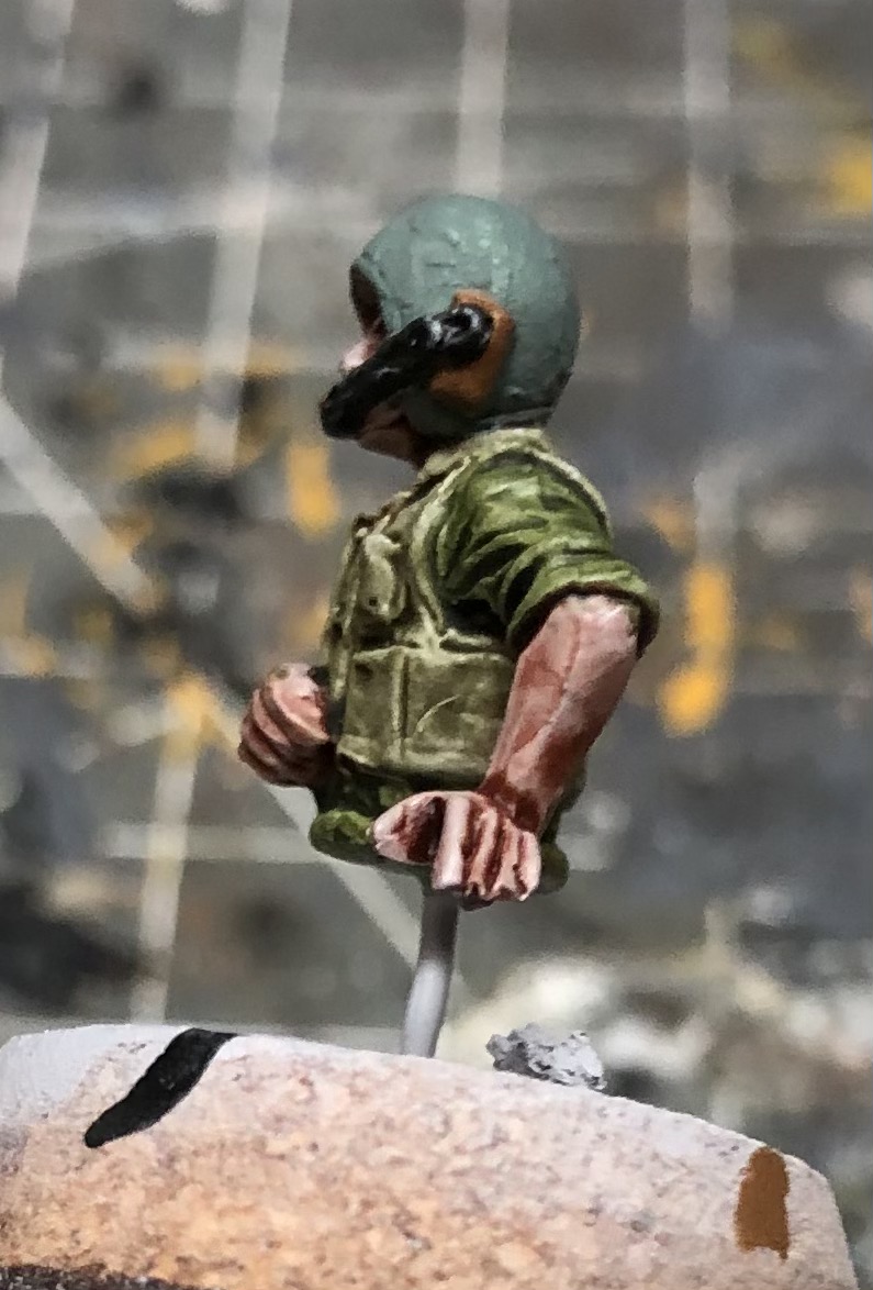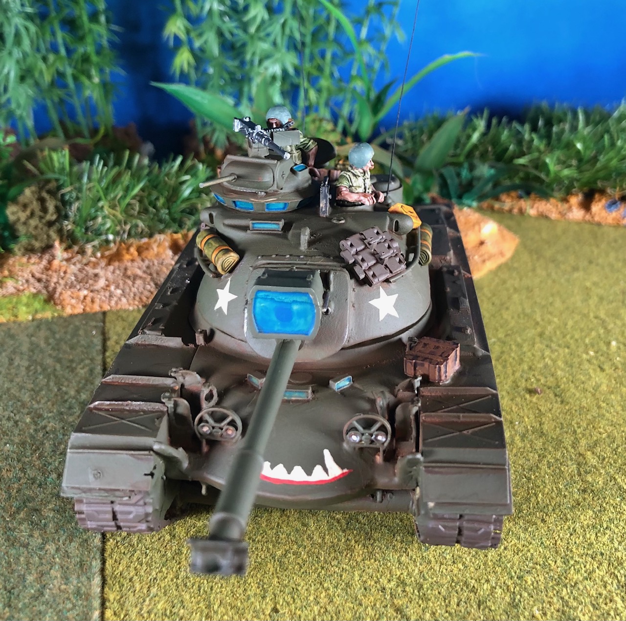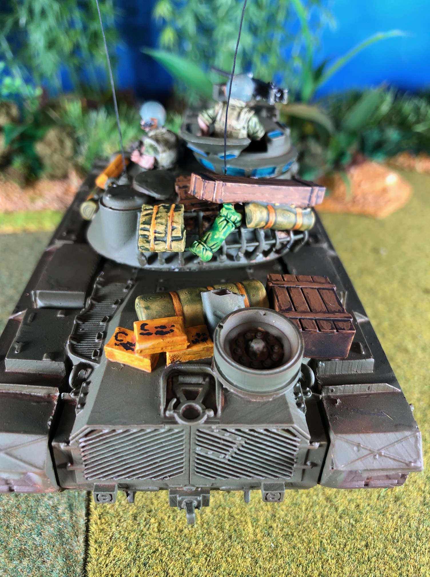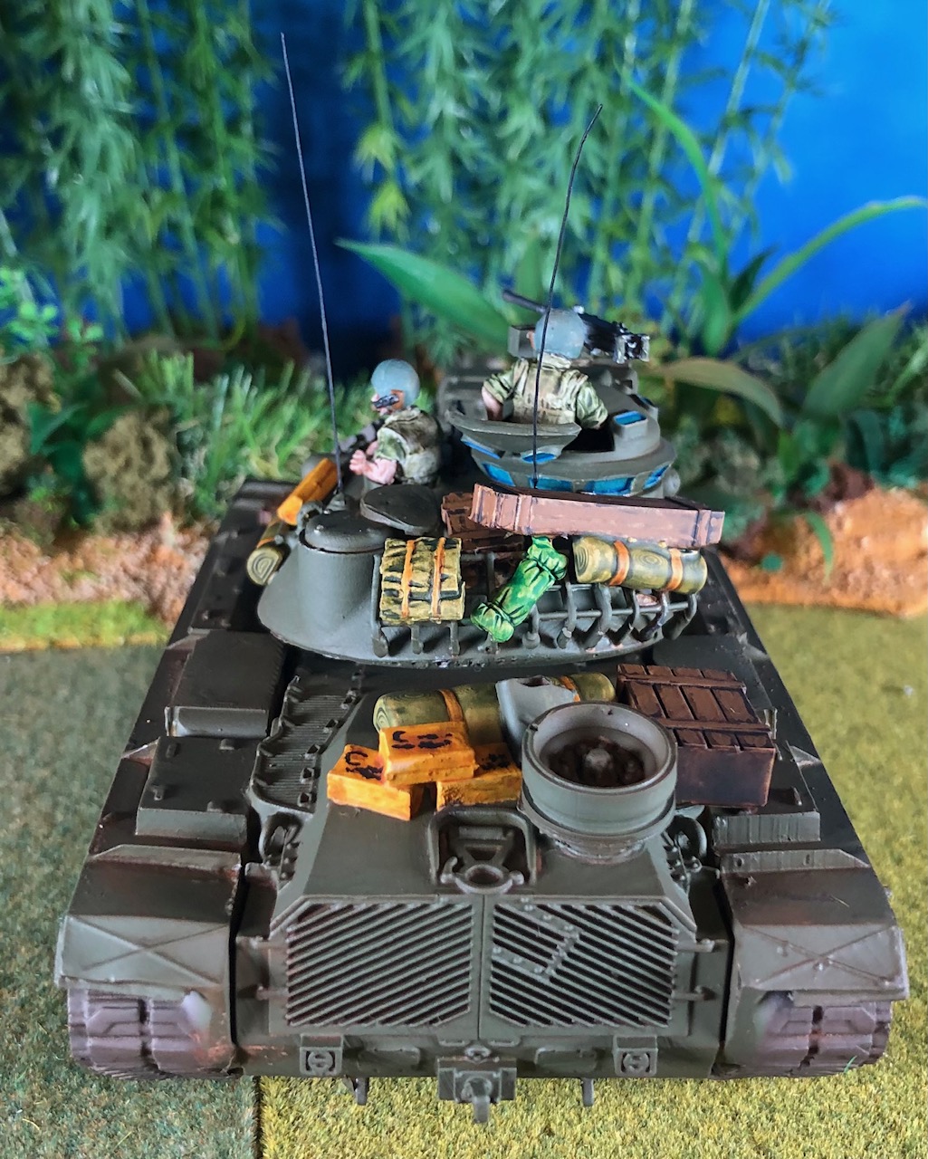The model of the M 48 is an Empress Miniatures resin and white metal kit in 1/50. The crew figures were done by Paul Hicks. The model is very easy to put together and includes quite a few additional track links to ad to the vehicle as additional armor. I painted the model with an airbrush and conventionally with a paintbrush.