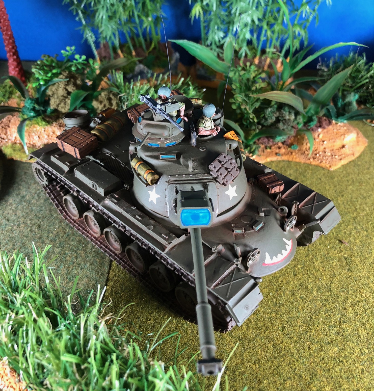The M48 Patton is an American first generation main battle tank (MBT) introduced in February 1952, being designated as the 90mm Gun Tank: M48. Nearly 12,000 M48s were built, mainly by Chrysler and American Locomotive Company, from 1952 to 1961. The M48 underwent many design modifications and improvements during its production life. The M48 saw extensive action with the US military during the Vietnam War. Over 600 Pattons would be deployed with US forces during the war. The initial M48s first landed with the US Marine 1st and 3rd Tank Battalions in 1965. When US forces commenced redeployment operations, many of the M48A3 Pattons were turned over to the Army of the Republic of Vietnam (ARVN) forces, in particular creating the battalion-sized ARVN 20th Tank Regiment. At the end of the war 20th Tank Regiment had lost all of their tanks to enemy fire.During the first month of the First Battle of Quảng Trị all ARVN M48 Pattons were lost.