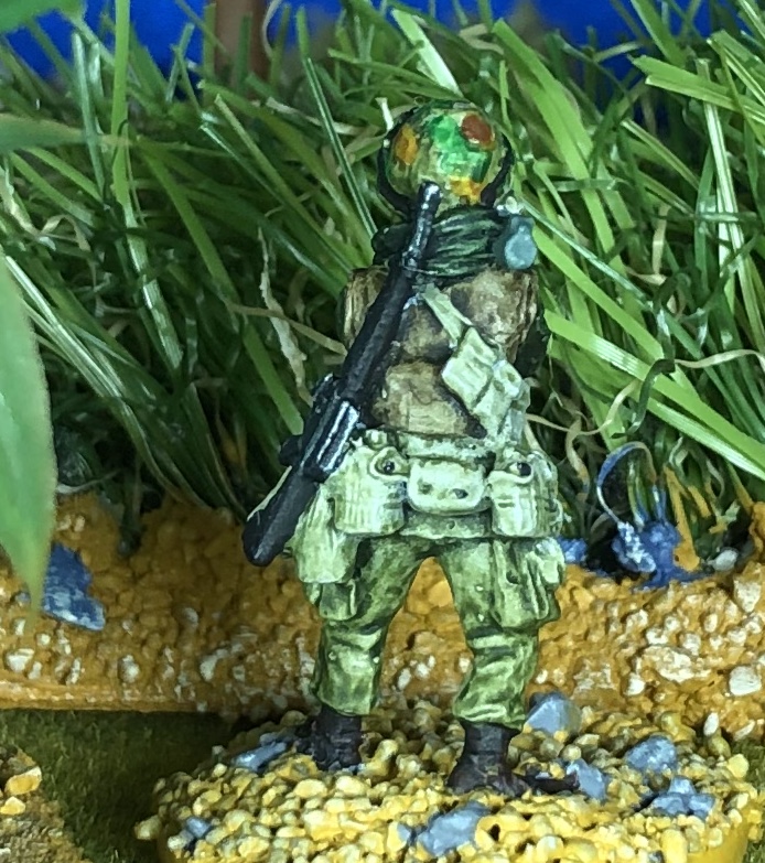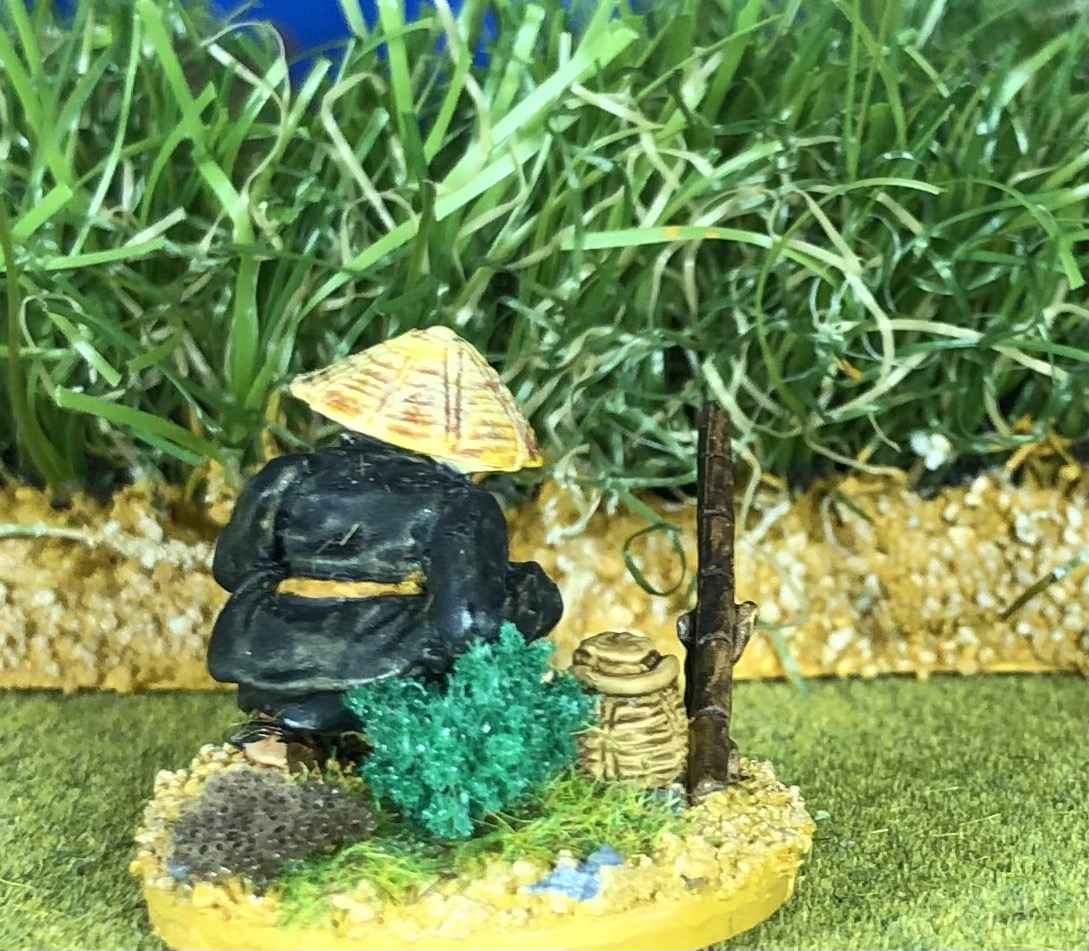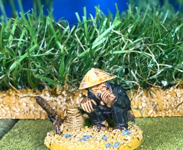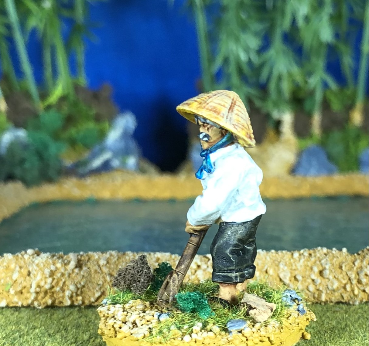 Here is a female Vietnamese farmer planting rice. The figure is from Full Metal Miniatures.