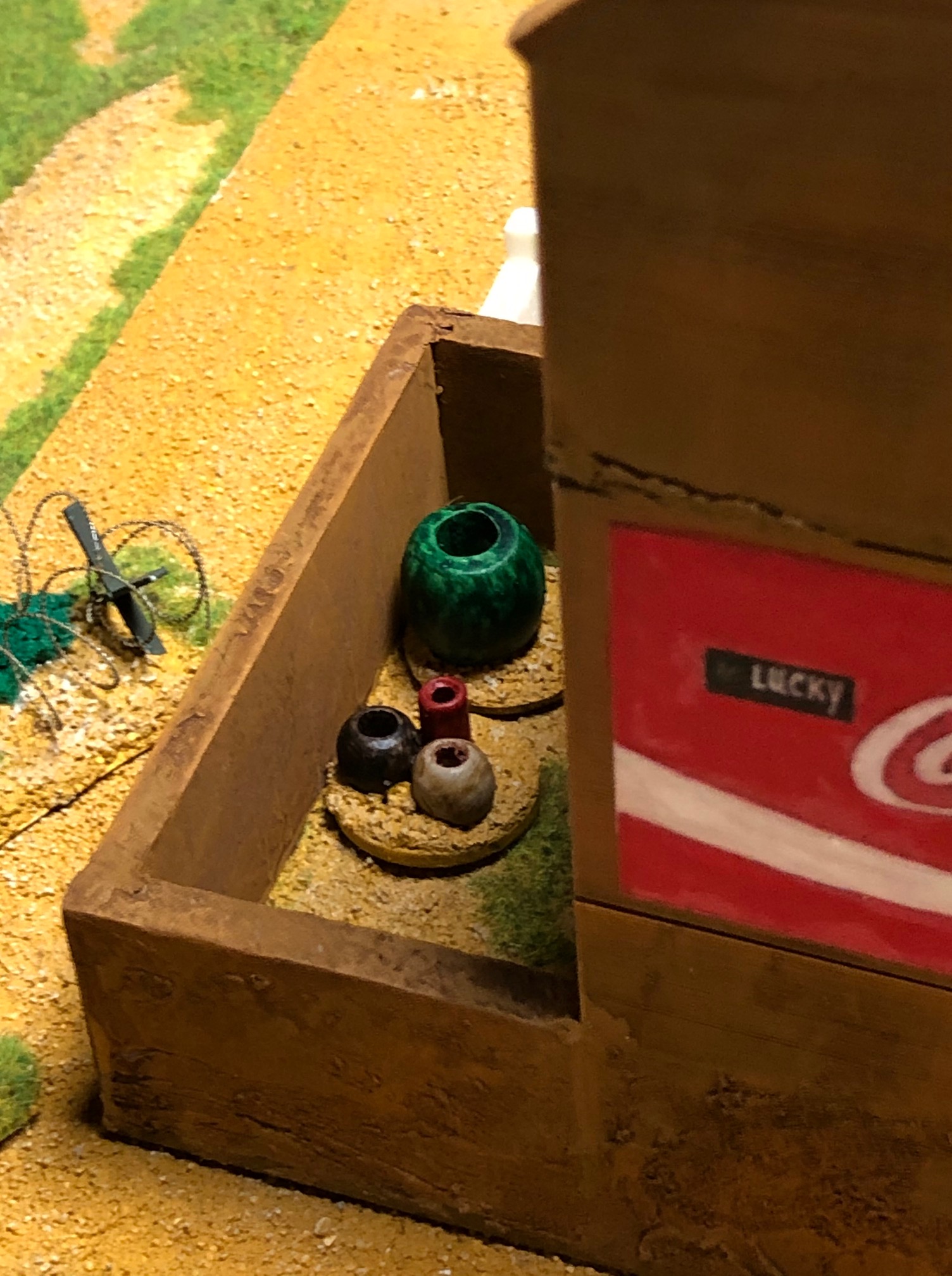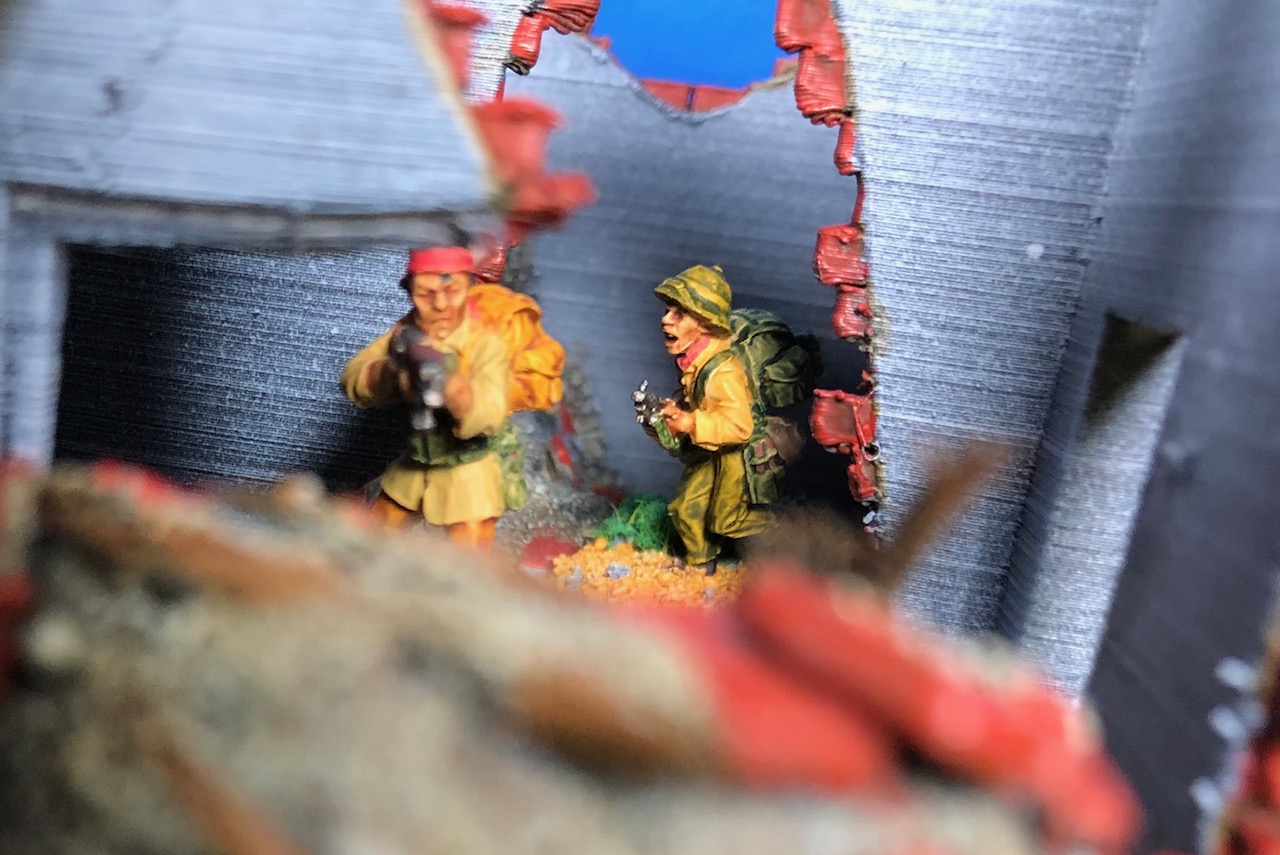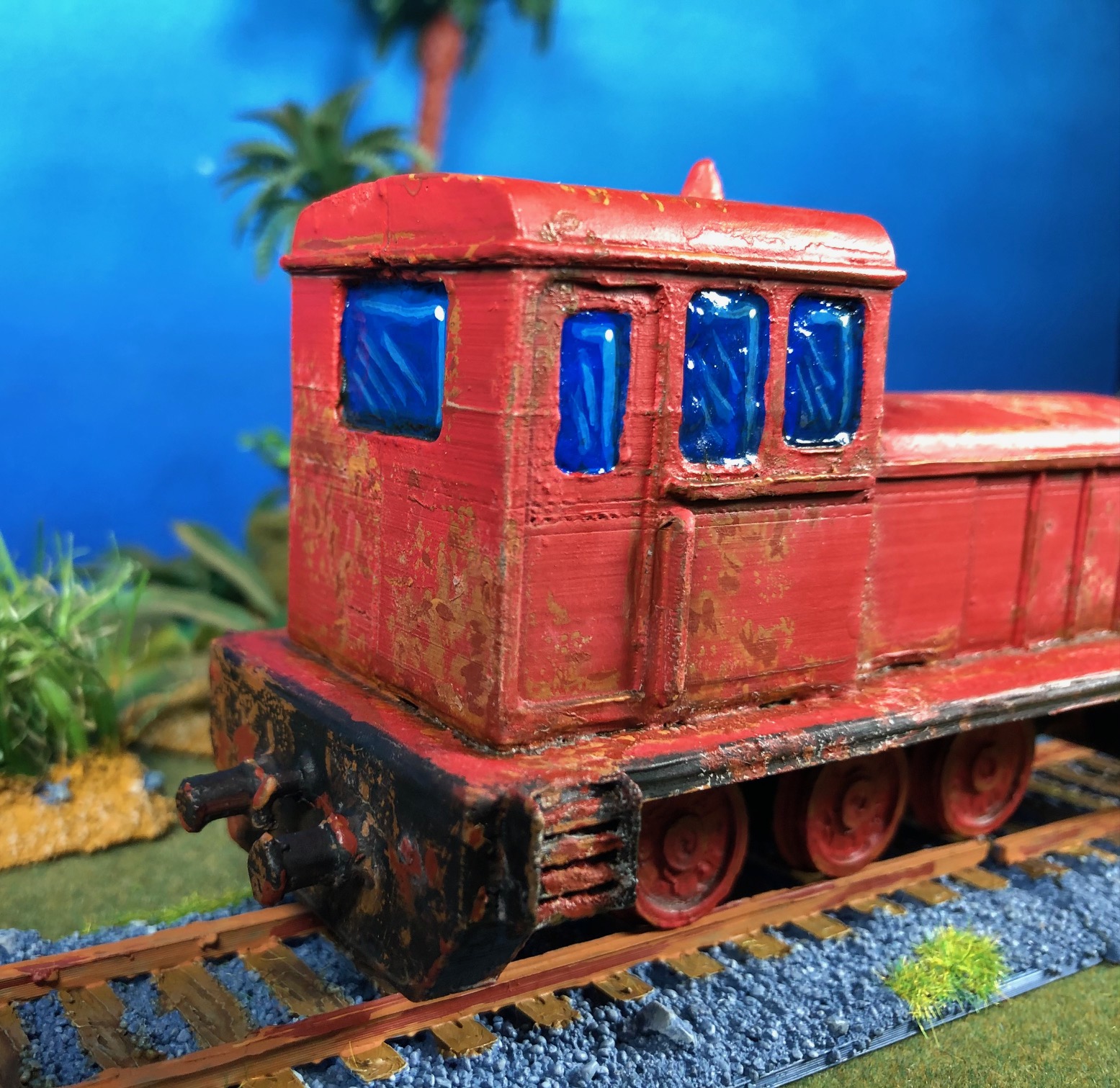 I thought that a small train station for my Hue project would be nice. There is a complete Hue train station in the WOW Vietnam kickstarter but for me it is just too big. So I started with some tracks and a Diesel engine from another WOW kickstarter.