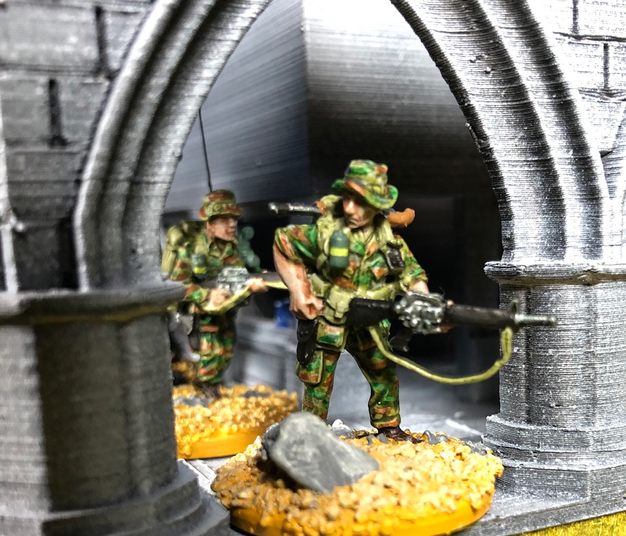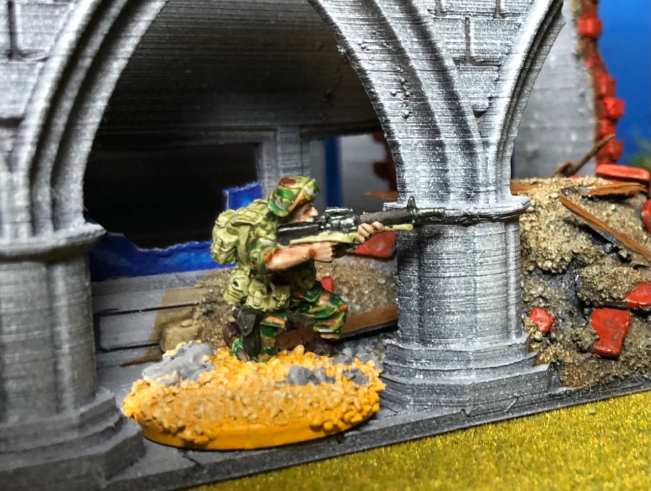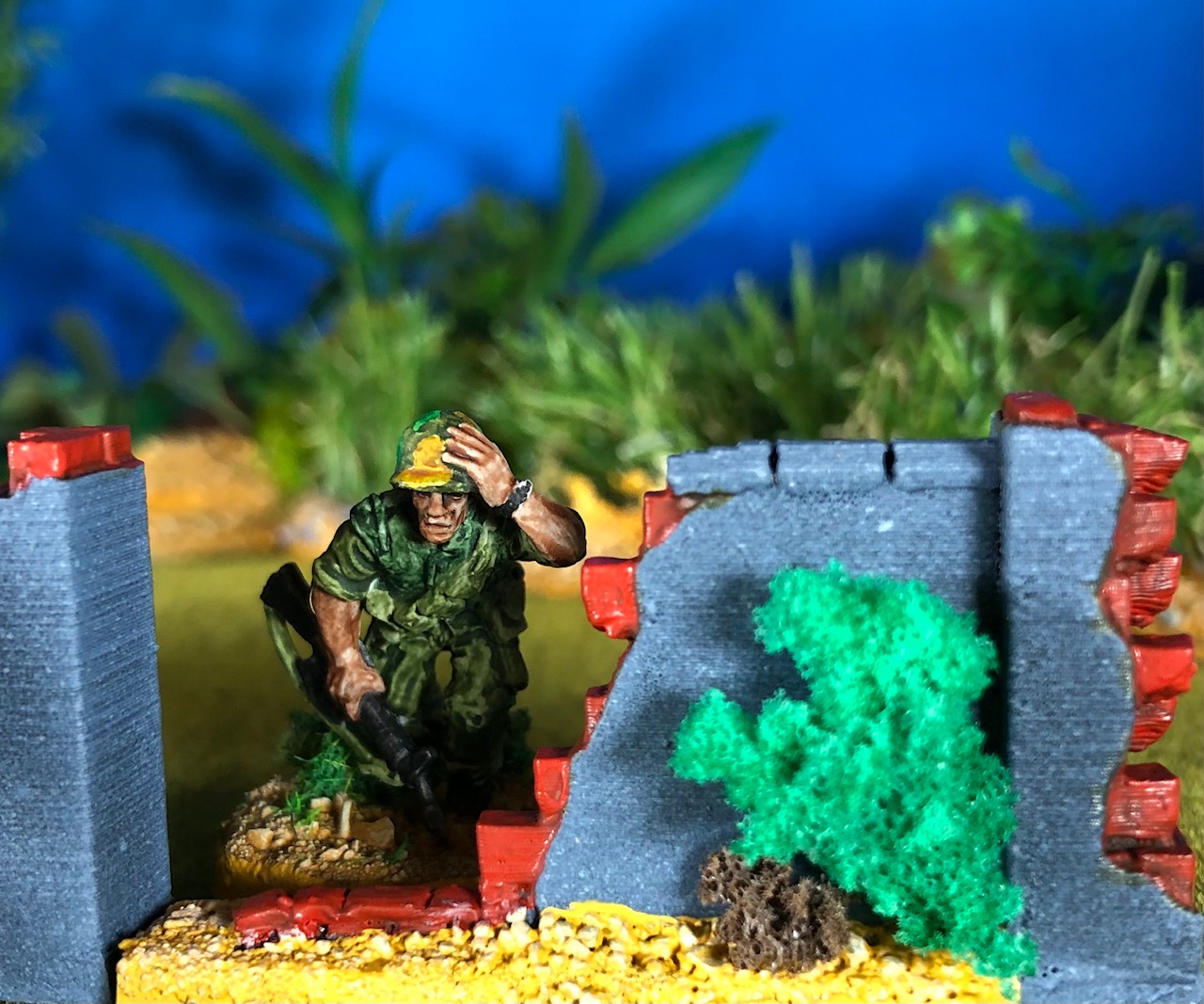 I thought that a small train station for my Hue project would be nice. There is a complete Hue train station in the WOW Vietnam kickstarter but for me it is just too big. So I started with some tracks and a Diesel engine from another WOW kickstarter.