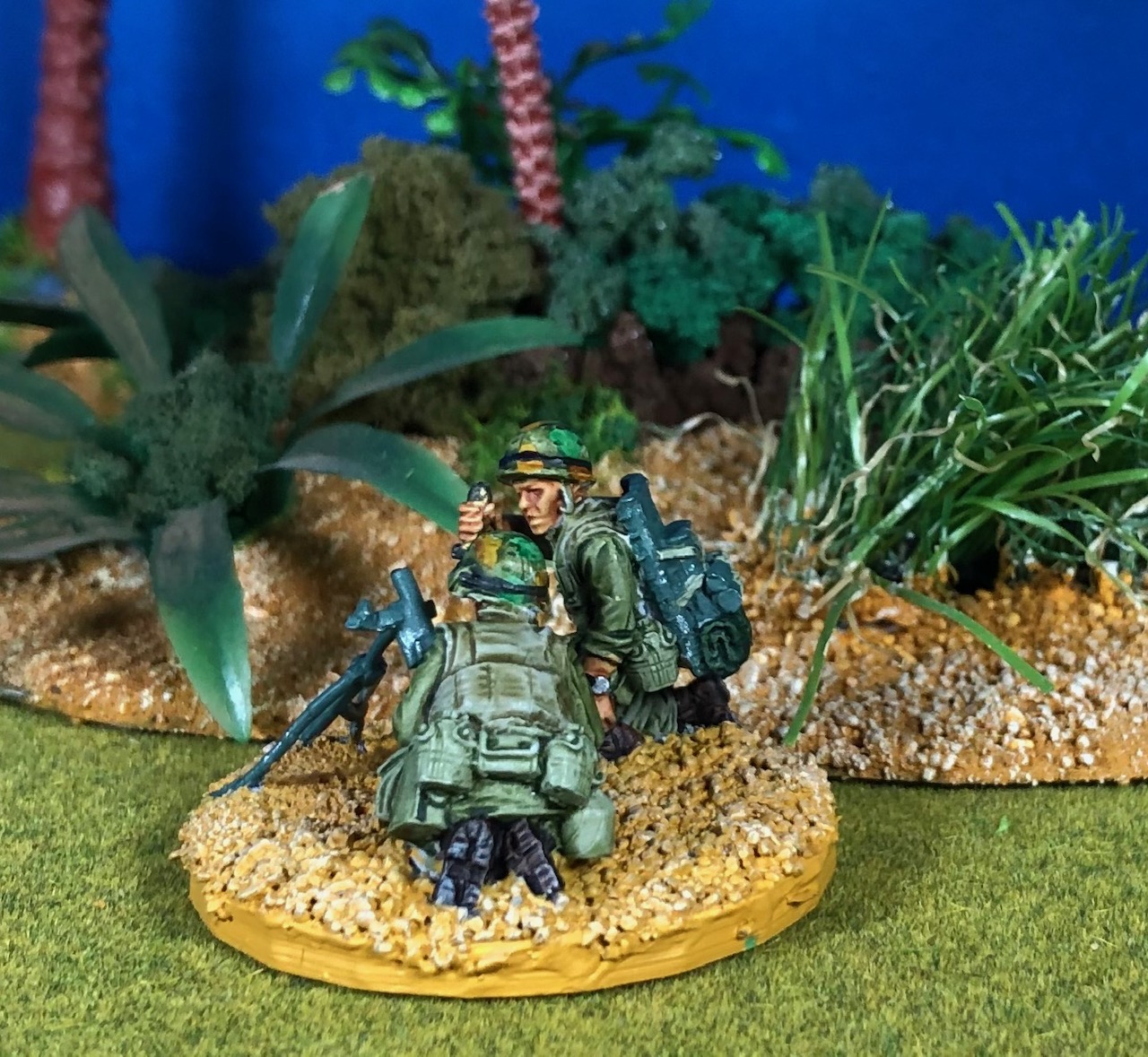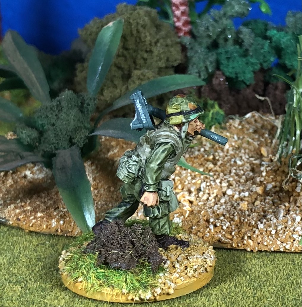 Here are the two missing figures of the Empress Miniatures US Marine 60mm mortar. These are on the move carrying the mortar baseplate and other equipment: