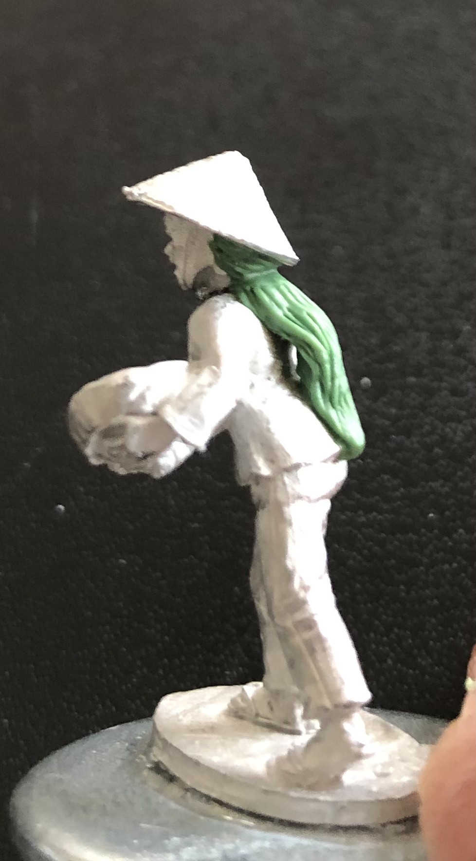 Last week I got the new Vietnamese civilians from Empress sculpted by Paul Hicks. Very nice figures indeed . I ordered each figure twice as I wanted to change one each by swiping heads or adding some green stuff to get an even wider variety of miniatures. So above is a female civilian, the left figure is the original the middle and right pictures show what I did.