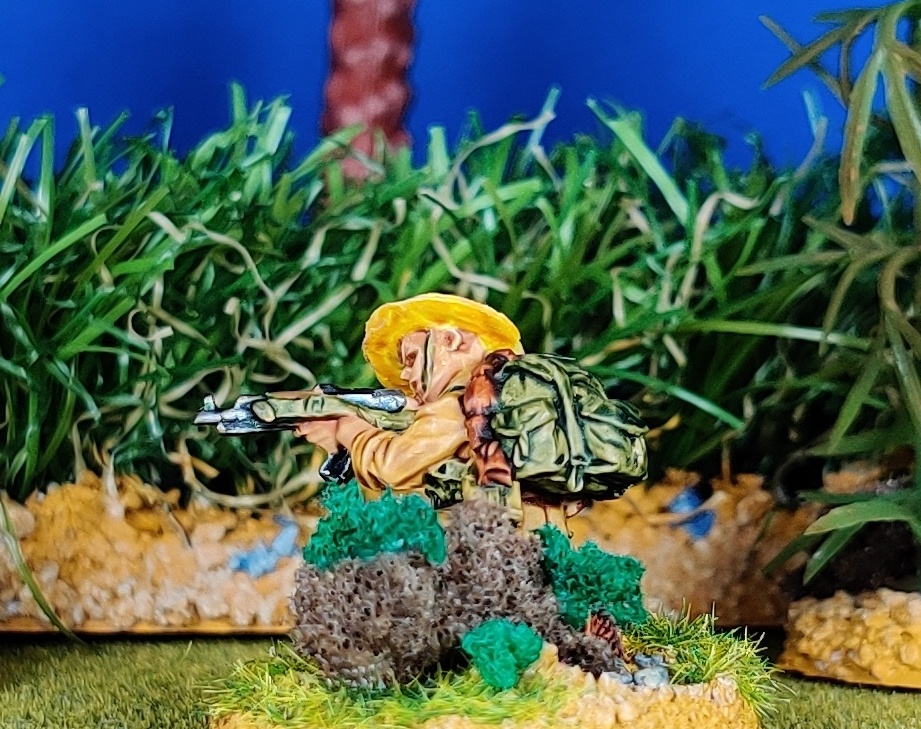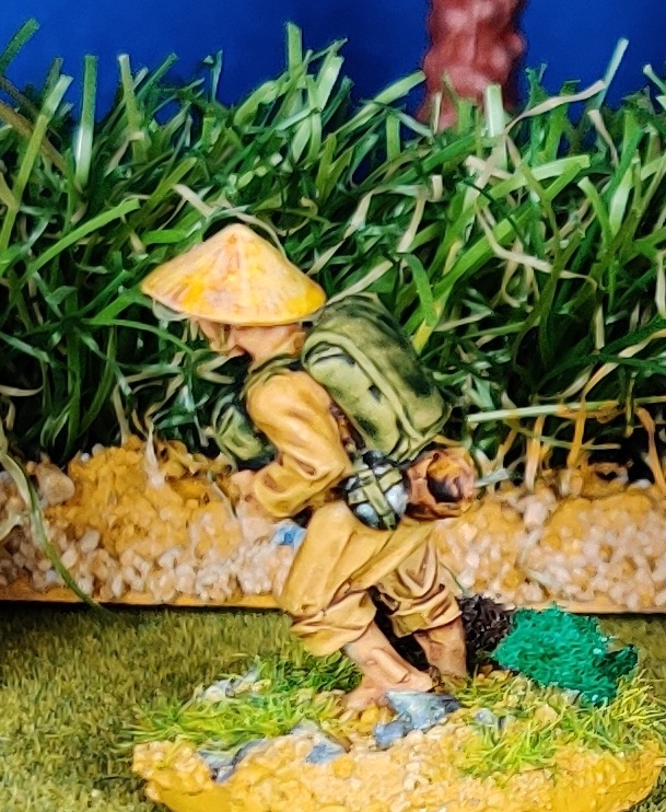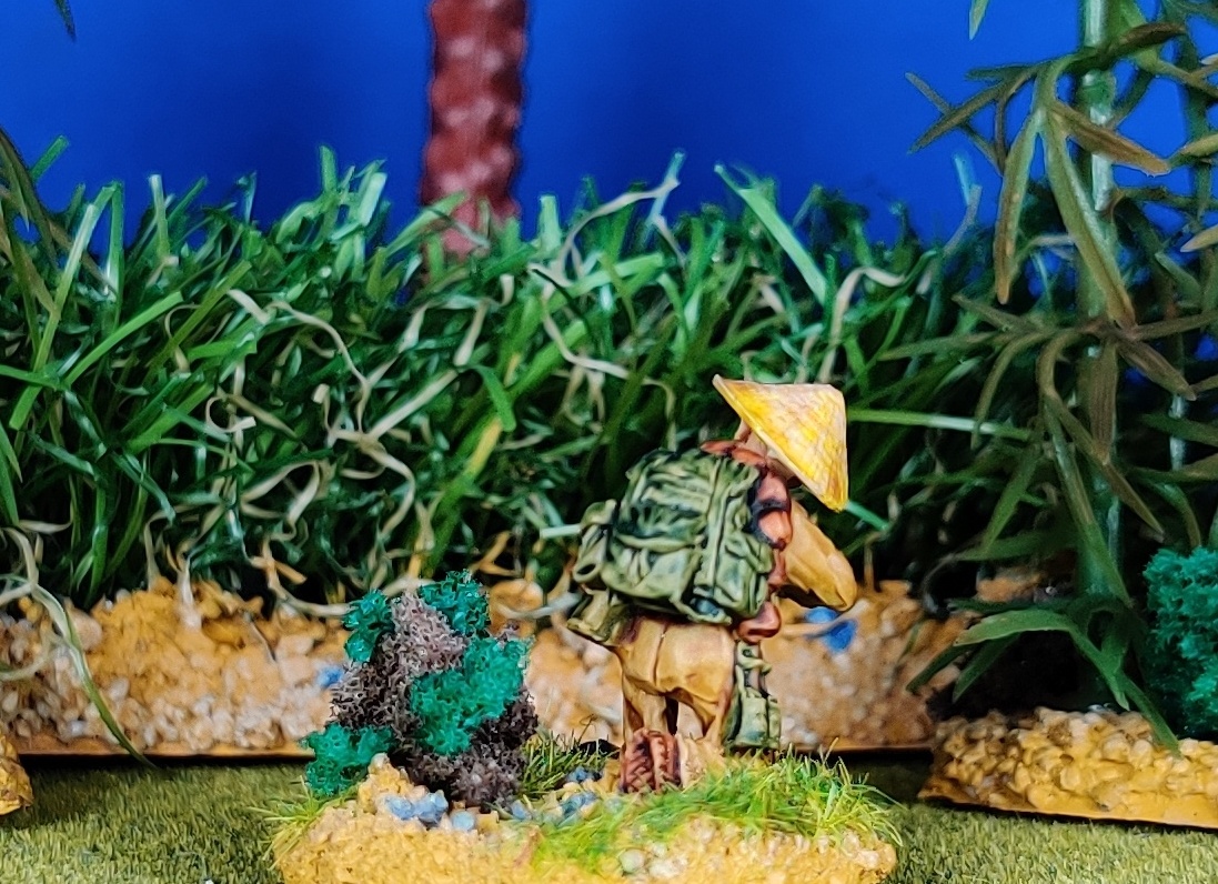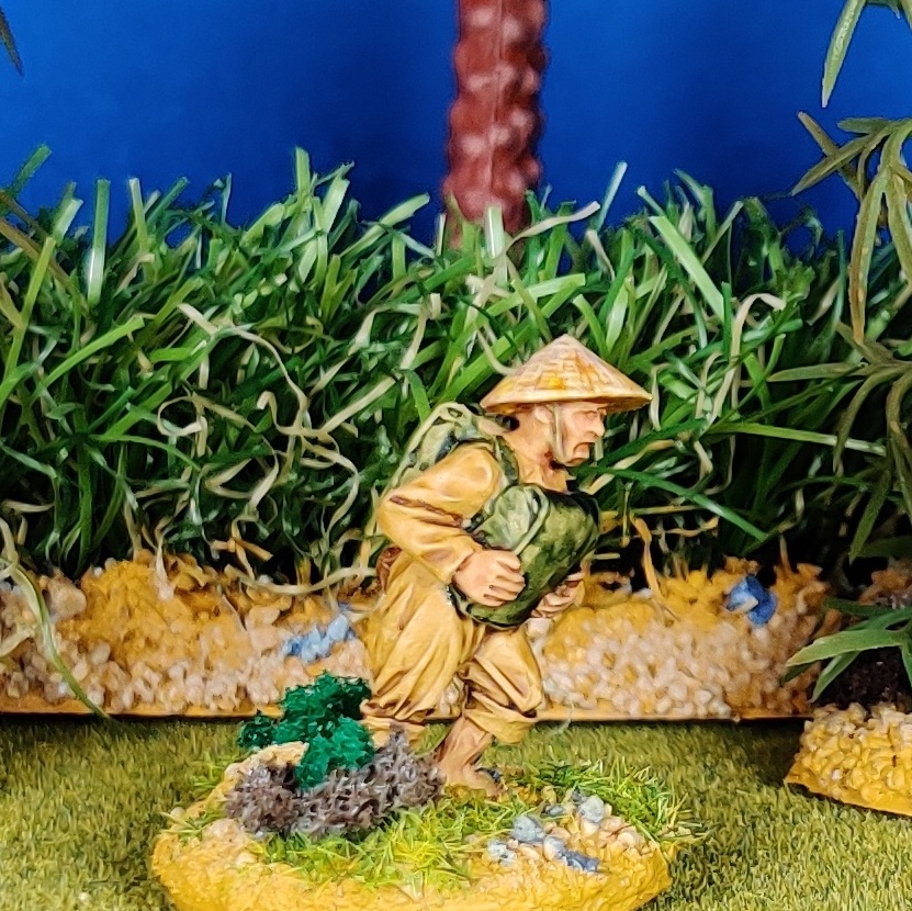 My newest addition to the ranks of my NVA force is a recoilless rifle on the move. This one comes with another one deployed in the same pack. Figures are from Empress Miniatures from their indochine war range. Works for the American war, too.
