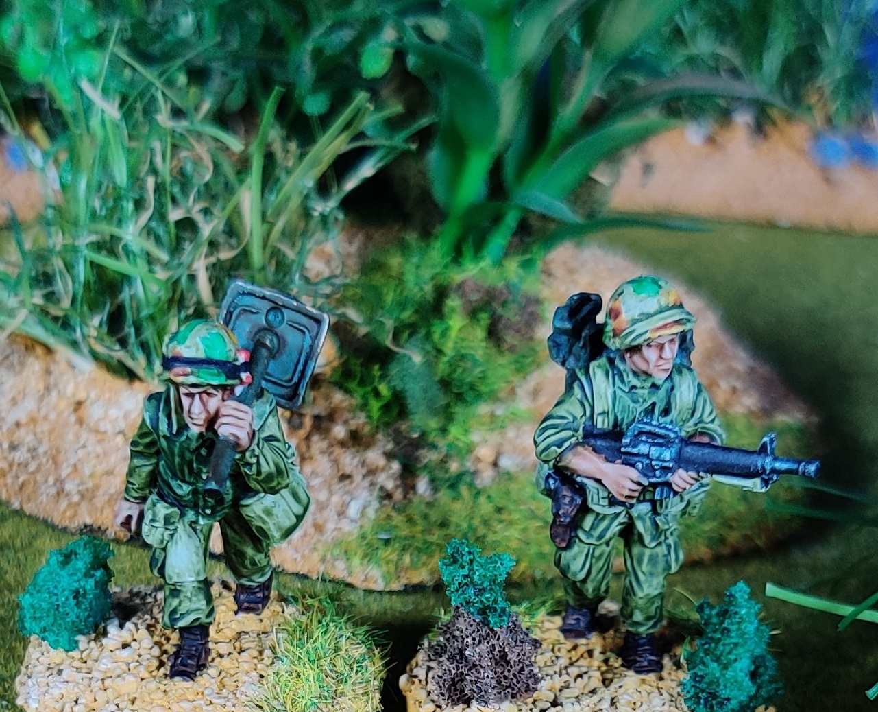 A US Marine 60mm mortar team 3. November 2021 thomasriepe 28mm, 28mm figure, 28mm Wargaming, 60mm mortar, Empress miniatures, Paul Hicks, US Marines in Vietnam, Vietnam war, wargaming Here is my latest painting effort. Painted with GWs contrast paints. The figures are from Empress Miniatures sculpted by Paul Hicks. A lovely little viginette. Morte to come in the future as my painting mojo is back Share this: Click to share on X (Opens in new window) X Click to share on Facebook (Opens in new window) Facebook Click to print (Opens in new window) Print Click to share on WhatsApp (Opens in new window) WhatsApp Click to email a link to a friend (Opens in new window) Email Like Loading...