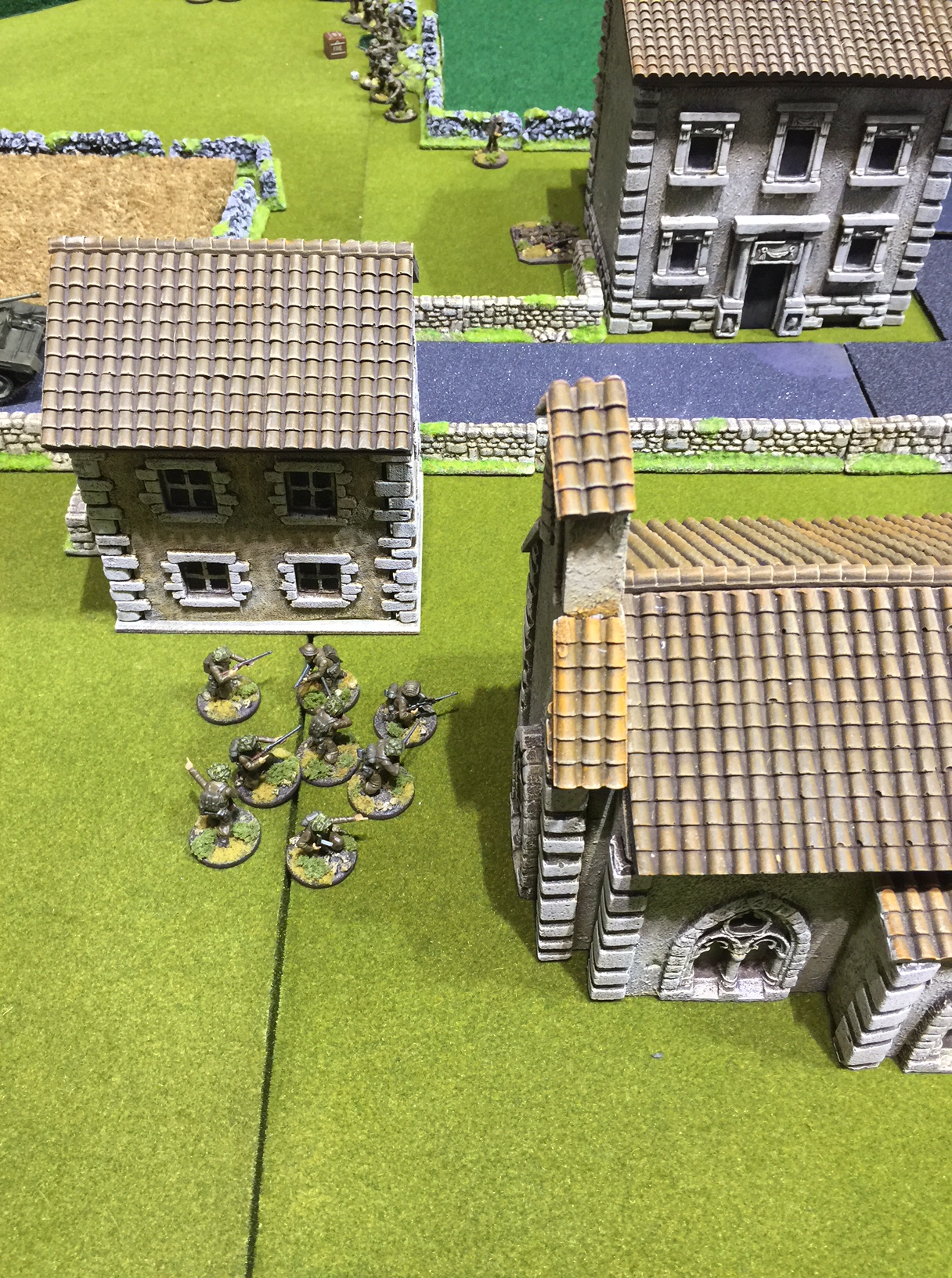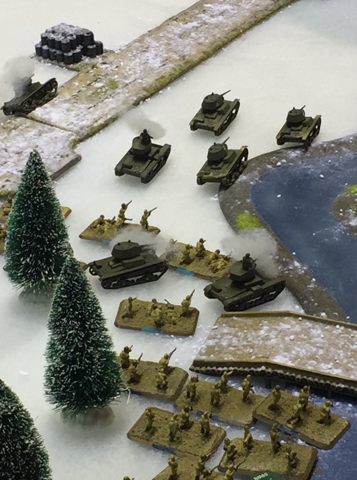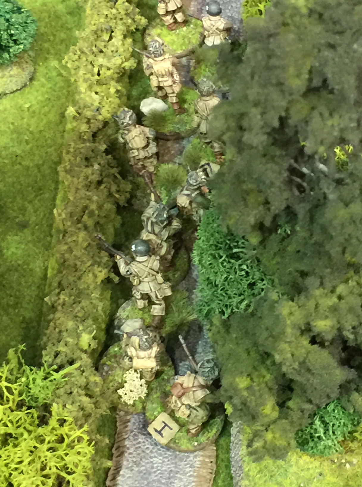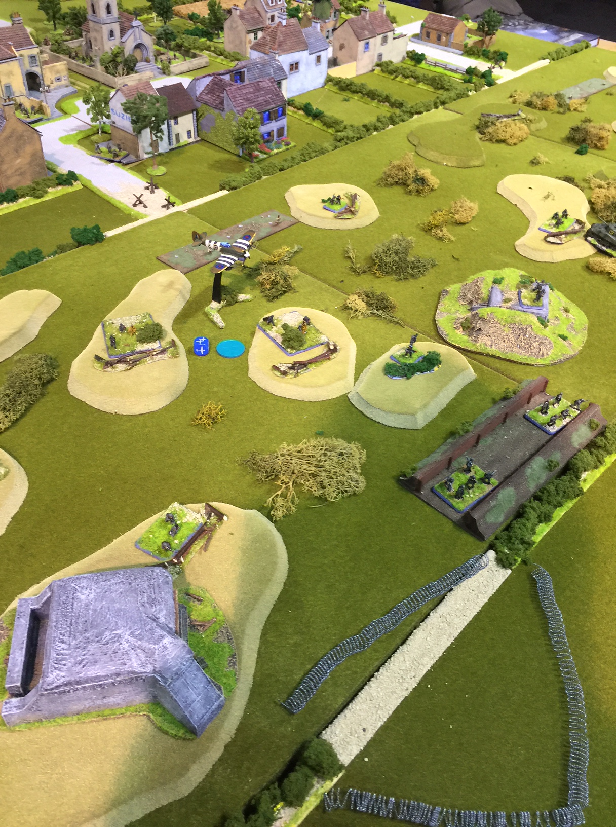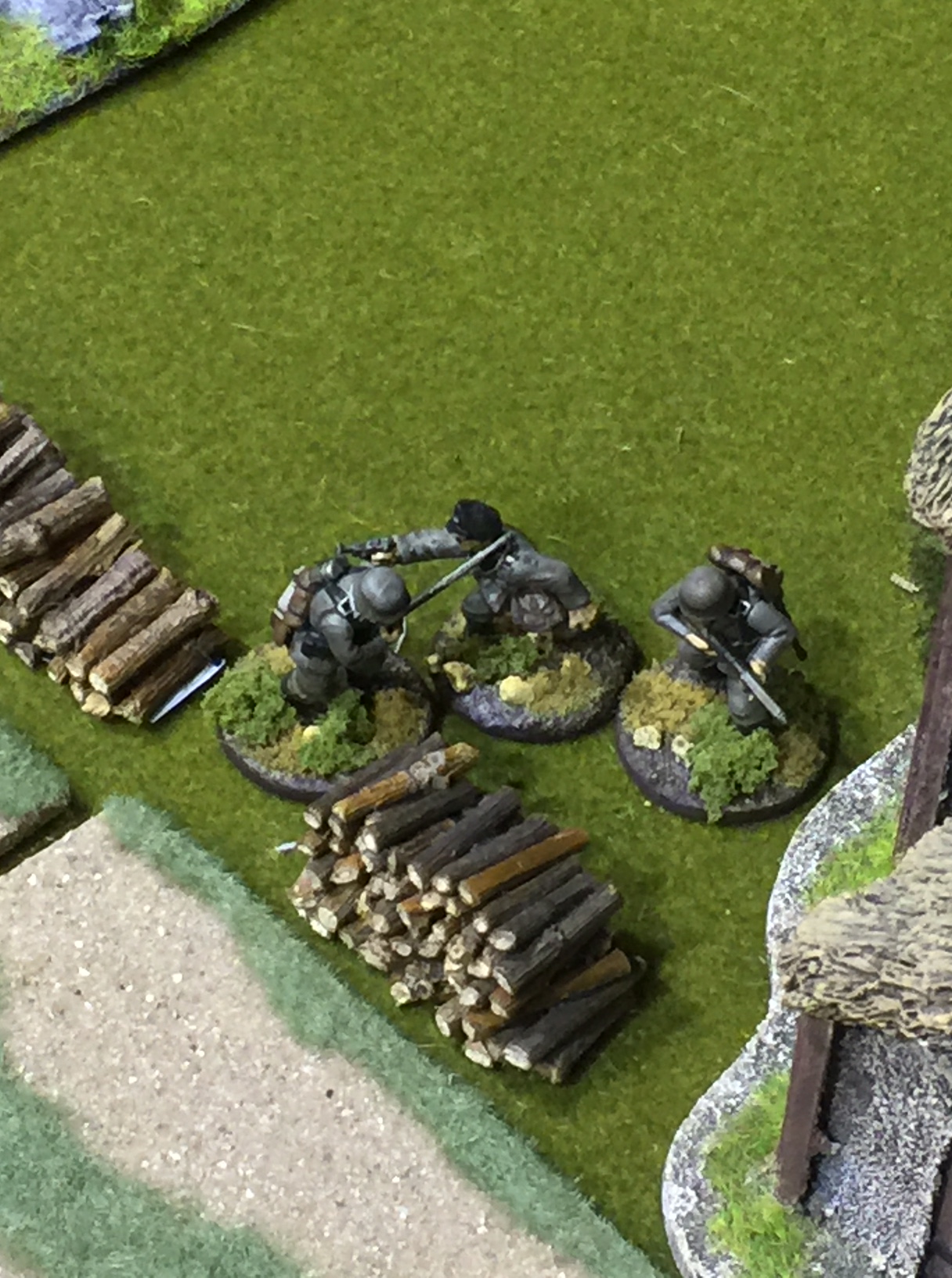 It is a game set during the battle of the Bulge . Wonderful winter terrain and very very good painted figures:
