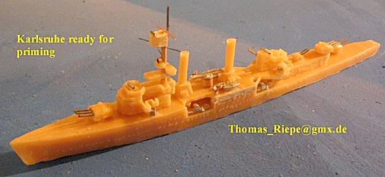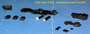 Some smaller parts, such as the ships boats and the torpedo tubes, are made from white metal. The molds were made in two parts, and the models were dropcast.