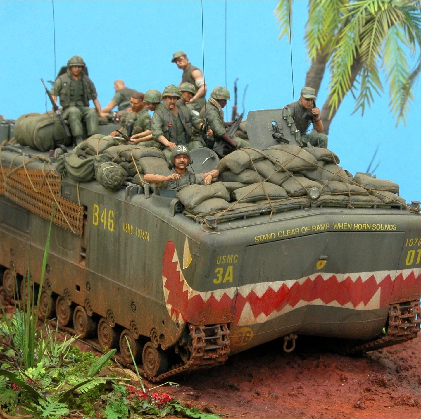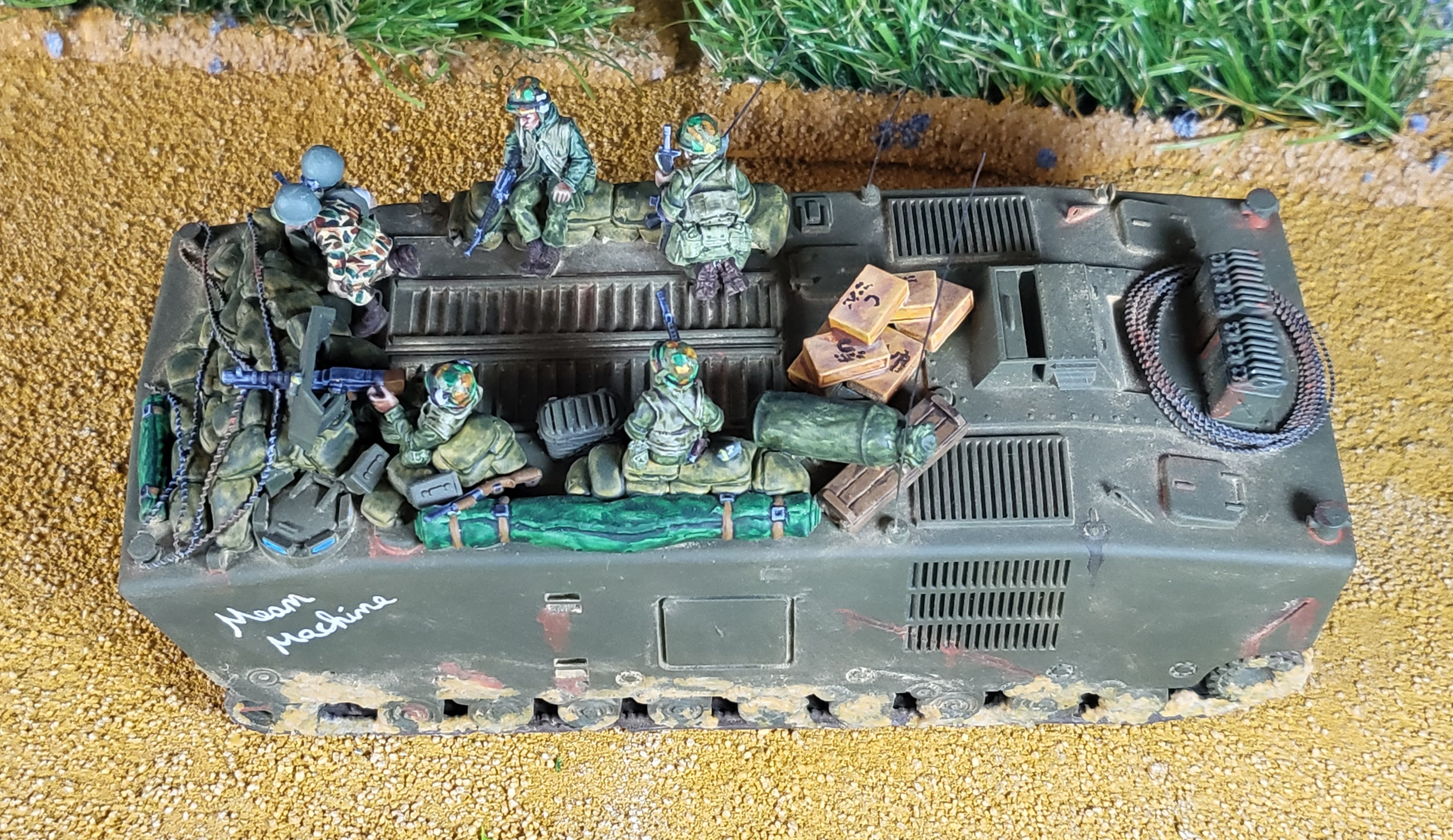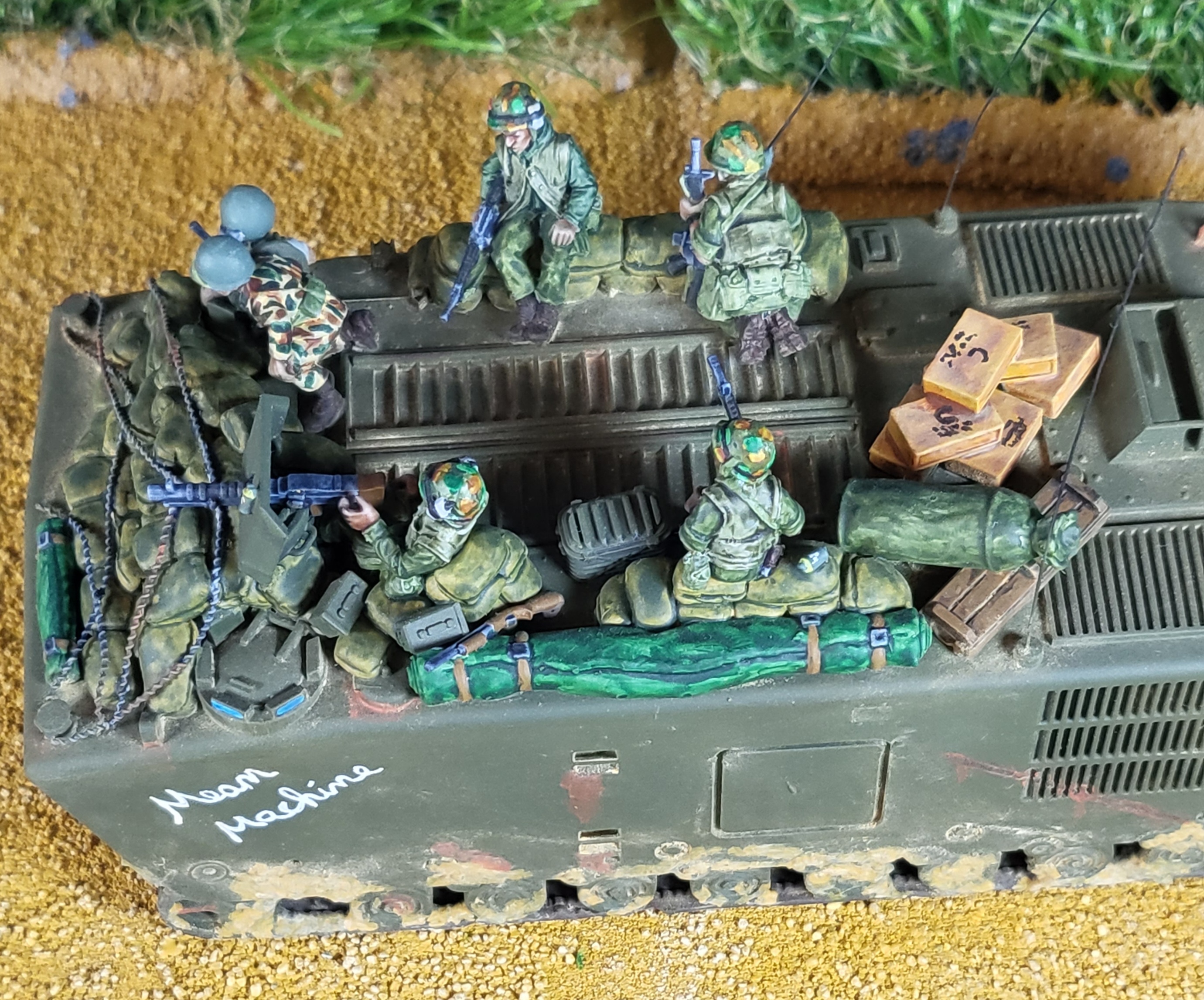 I got the wonderfull 3D STLs from BobMack for the Vietnam war. There are nearly all versions of the M113 included. I printed the M113 with my resin printer and enlarged it to 1/50 to fit in with my other vehicles from Empress Miniatures. the crew and Infantry figures are by Empress, sculpted by Paul Hicks.