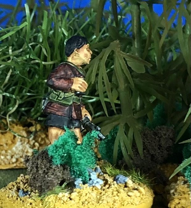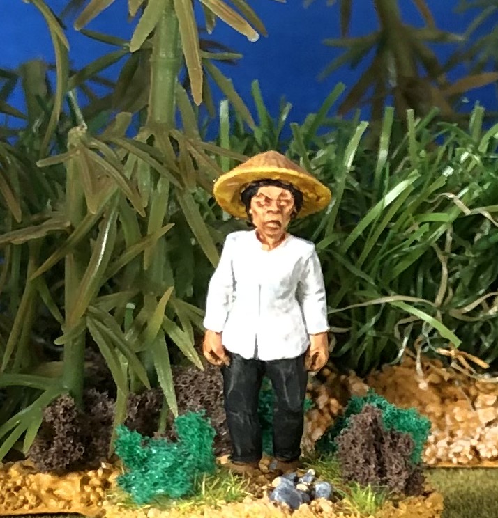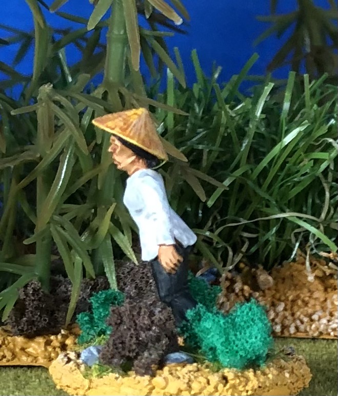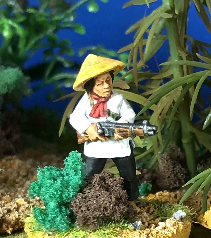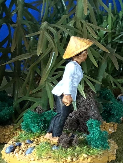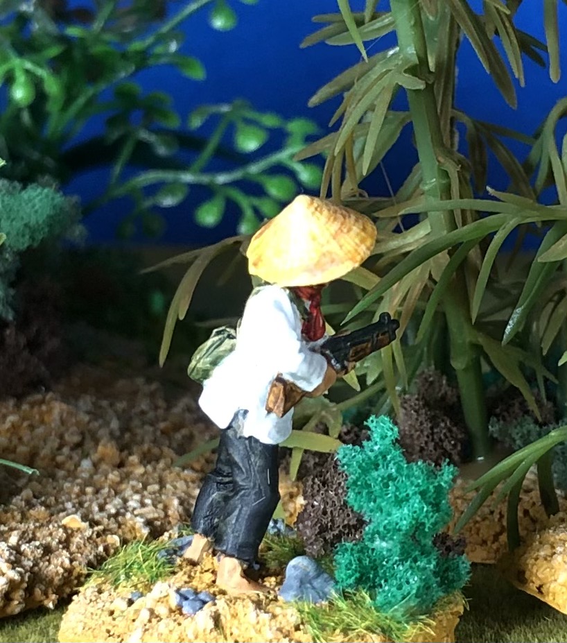 Here is another VC soldier with the traditional vietnamese “No’n La’ ” headgear. The head is from Empress as is the body of the figure.