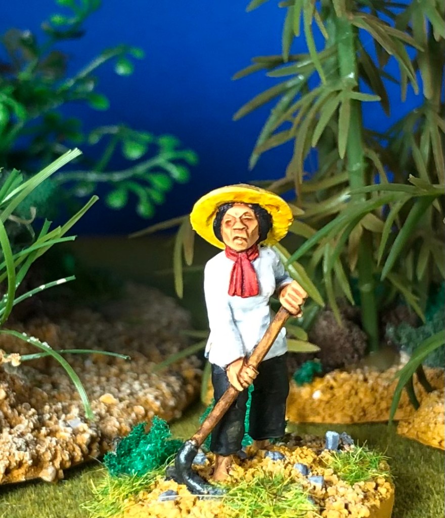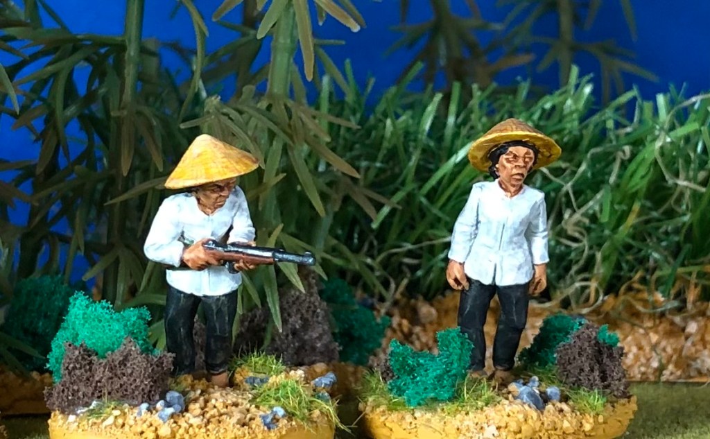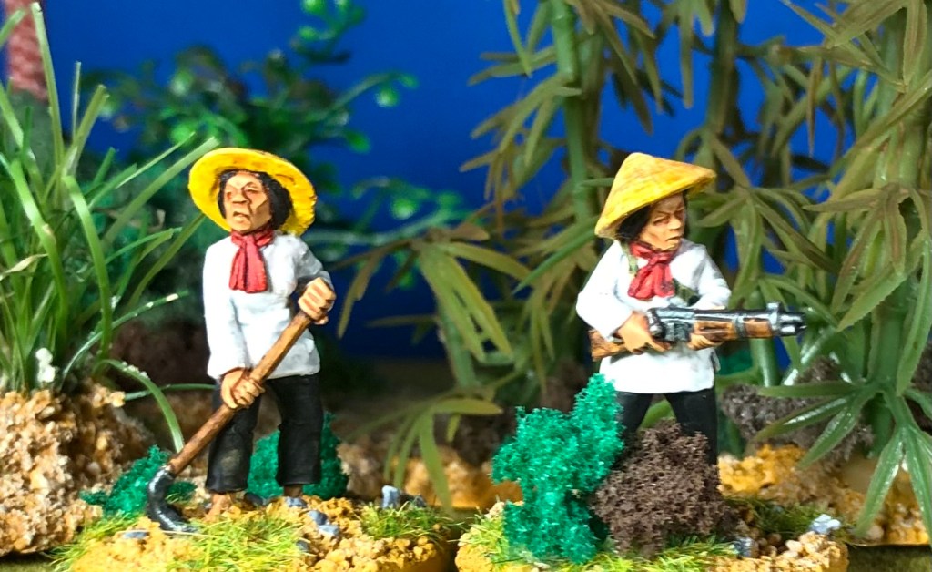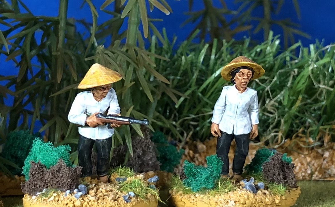 Here is another VC soldier with the traditional vietnamese “No’n La’ ” headgear. The head is from Empress as is the body of the figure.